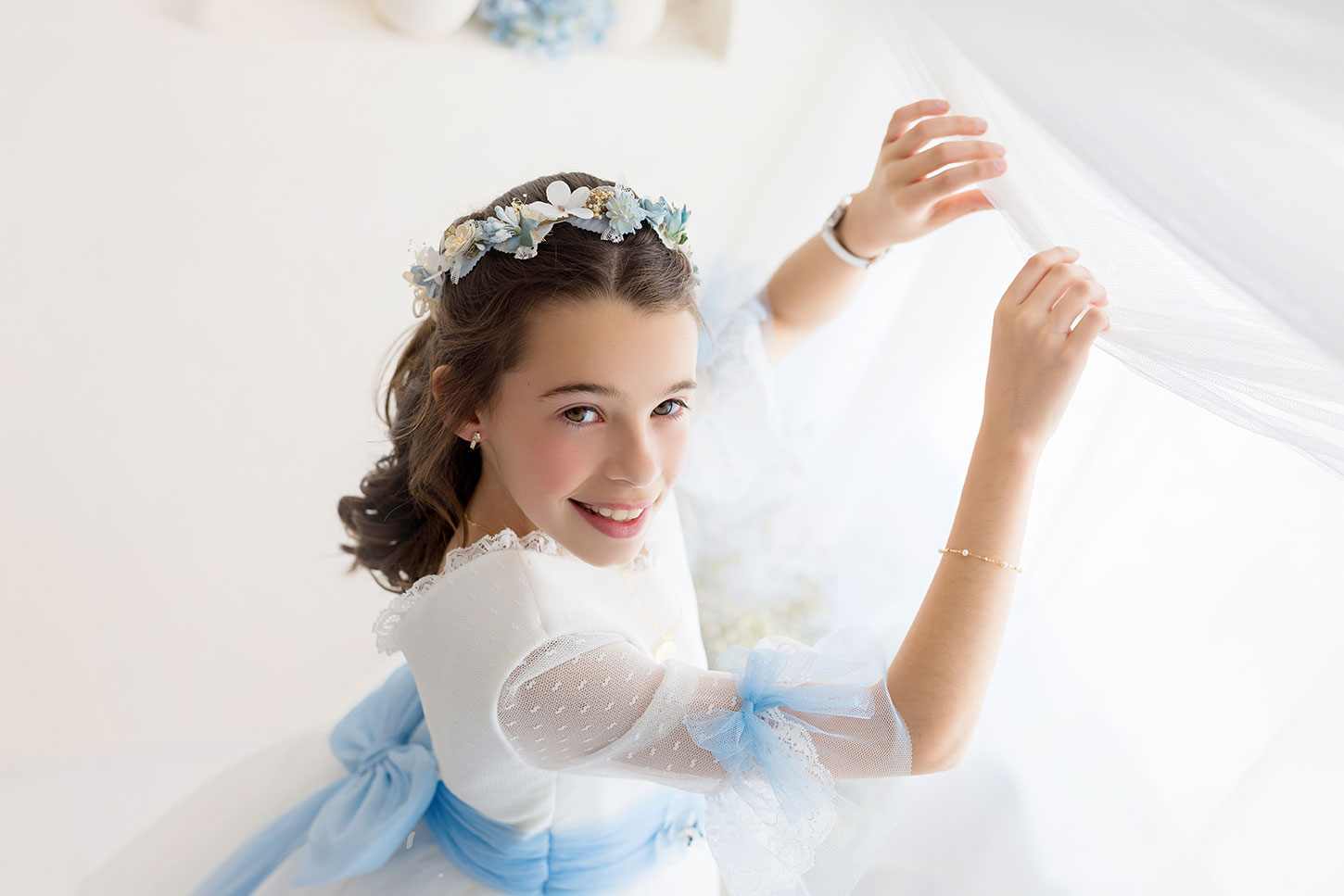 Mis sesiones de comunión están pensadas para recordar cómo era tu peque en ese momento tan importante, reflejando su personalidad y esencia. Las realizo tanto en mi estudio como en exterior, dando opción al finalizar la sesión a que hagamos fotos con sus aficiones de ese momento. El resultado son imágenes emotivas, elegantes y atemporales, un recuerdo precioso de una etapa que se va, pero que quedará para siempre en vuestras fotografías.